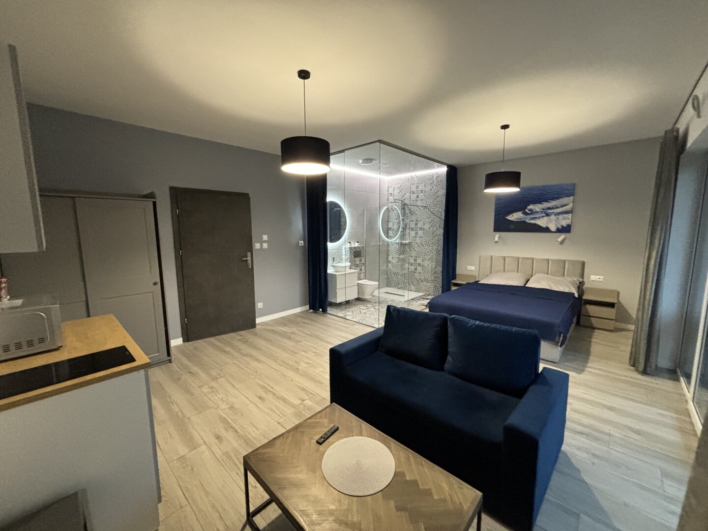 Odkryj komfort i elegancję w naszym w pełni wyposażonym apartamencie, idealnym dla maksymalnie 4 osób. Przestrzeń łączy funkcjonalny salon i sypialnię, tworząc przytulne, nowoczesne studio.