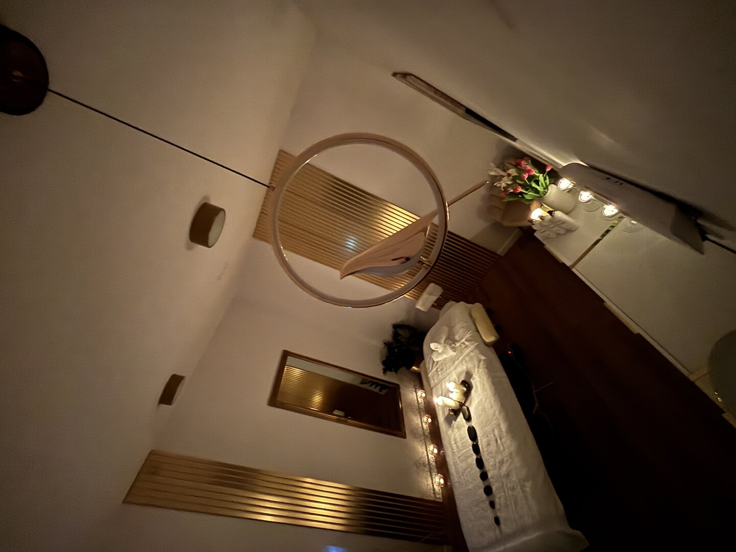 Elegancka, wyciszona przestrzeń stworzona z myślą o jodze, medytacji oraz treningach fitness. Sprzyja koncentracji, równowadze i świadomej pracy z ciałem, zapewniając komfortowe warunki do ruchu i regeneracji.
